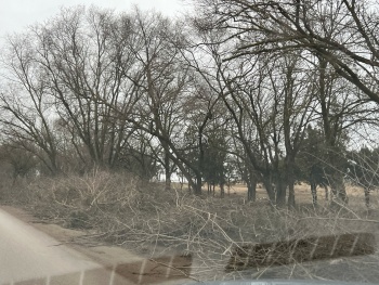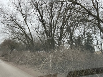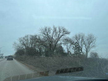 Работы по уборке здесь продолжаются 1 февраля. Техника продолжает вывозить ветки деревьев с обочин.