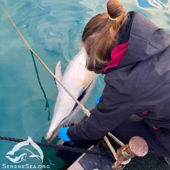 Также волонтеры отправились к погибшей самке афалины, найденной в Севастополе. По визуальному сопоставлению к четырем дельфинам, выпущенным из дельфинария, она не относилась, идентификационный чип также не был найден. У животного было зафиксировано глубокое проникающее ранение в брюшную полость. Такие ранения нередко находят у дельфинов, приловленных в рыболовные сети. Рыбаки таким образом пытаются избавиться от тела дельфина, чтобы оно не всплыло.