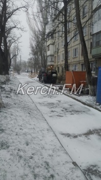 В редакцию  Керчь.ФМ  обратились жители дома по Орджоникидзе, 110. За их домом идут работы по прокладке водовода. Но ничего умнее рабочие в мороз не придумали: они напором сливают воду в жилые дворы.