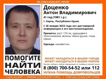 В Керчи разыскивается Доценко Антон Владимирович, 41 год (1981 г.р.). О поиске мужчины в соцсетях сообщили волонтеры «ЛизаАлерт», - передает  Керчь.ФМ.