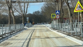 Около школы, вдоль дороги, установили новые ограждения и дородные знаки, предупреждающие о пешеходном переходе. На 9 февраля работы на улице не проводились, не было ни техники, ни рабочих.