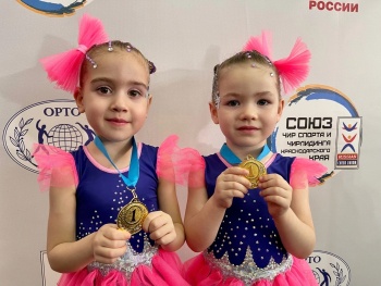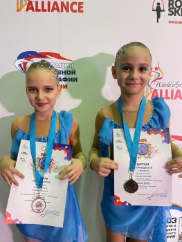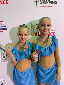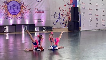 Каскова Полина, 8 лет, и Усикова Вероника, 7 лет, завоевали бронзовые медали и стали одними из лучших в дисциплине «Чир-джаз-двойка» «Мальчики, девочки».