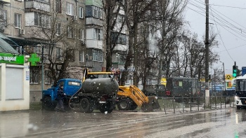 В Керчи 20 февраля около многоэтажки на улице Горького произошел порыв водовода. На место быстро приехали сотрудники водоканала. Для устранения течи они разрыли газон, - передает  Керчь.ФМ.