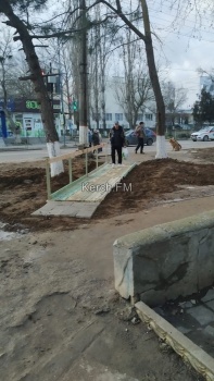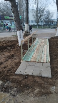 В Керчи у пешеходного перехода в районе «Института» появился деревянный мостик над грязью после проведения работ по замене водовода. Люди уже назвали его «Крымским», - передает Керчь.ФМ.