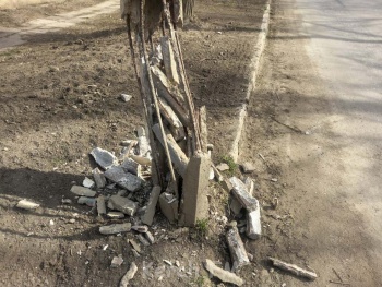 Внимание, керчане: неизвестный разбил опору электроосвещения на Вокзальном шоссе