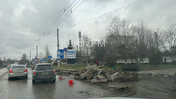 В Керчи на улице Еременко перед светофором перекрыли частично одну полосу дороги. Это связано с тем, что рабочие на проезжую часть выложили бордюры, - передает Керчь.ФМ.