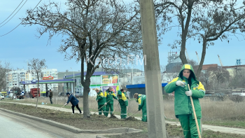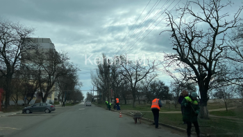 Также, работы проводят и на Камыш-Бурунском шоссе. Там занялись уборкой земли на газонах.