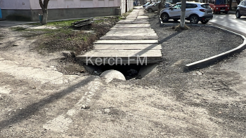 В Керчи на улице Гудованцева не безопасные тротуары для пешеходов. В одном месте на тротуаре, около управляющей компании, не хватает плит и человек может упасть в яму, а в другом месте открыт люк. В темное время суток горожане могут упасть в и покалечиться, - передает Керчь.ФМ.