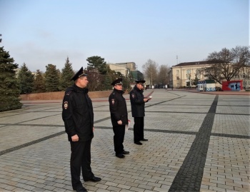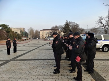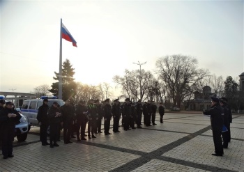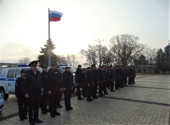 Так, 18 марта на центральной площади города-героя начальник Управления МВД России по г. Керчи подполковник полиции Юрий Маринцов совместно с заместителем начальника полиции по охране общественного порядка подполковником полиции Дмитрием Гудовым провели общий инструктаж сил и средств, задействованных в охране общественного порядка и обеспечении общественной безопасности на улицах и в иных общественных места. В инструктаже также приняли участие следственно-оперативная группа и заступающая смена дежурной части.