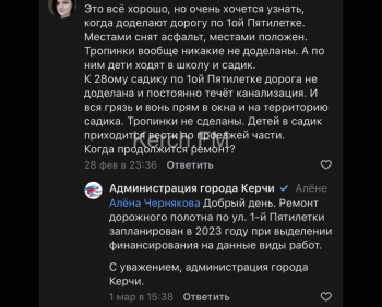 В Керчи так до си пор и не закончили ремонт дороги на улице 1-ой Пятилетки. В администрации Керчи сообщили, что ремонт полотна запланирован в 2023 году при выделении финансирования на данные виды работ. Так что сколько еще ждать неизвестно, - передает Керчь.ФМ.