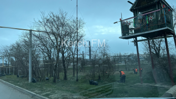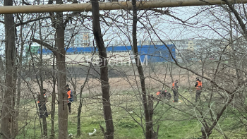 На ул. Рыбаков коммунальщики убирают сухие ветки и расчищают пустырь. А на улице Сверлова моют столбы освещения.