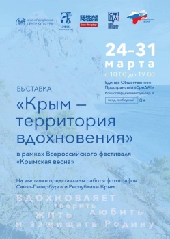 Фотовыставка создала настоящий культурный мост между Санкт-Петербургом и Крымским полуостровом и объединила творческих людей, вдохновленных его красотой. Фотовыставка пройдет на территории Единого Общественного Пространства «СреДА!» (Конногвардейский бульвар, 4) сс 24 по 31 марта 2023 года.