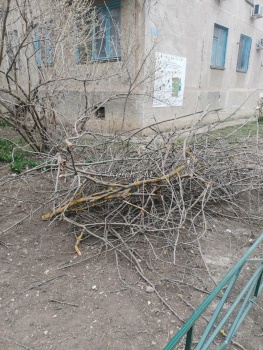 Несмотря на многочисленное количество сухих деревьев, которые остались нетронутыми, работники управляющей компании по неизвестной причине спилили живое, цветущие дерево-Яблоню! Это дерево находилось в центре палисадника и абсолютно не представляло опасности, и не мешало жильцам дома. Долгие годы жильцы дома 3 ул. Юн Ленинцев ухаживали за этим деревом, дерево радовало цветением, и урожаями!