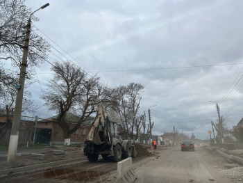 В Керчи на улице Чкалова продолжают активный ремонт дороги. Здесь ставят бордюры, ровняют будущие пешеходные дорожки, - передает Керчь.ФМ. Также в некоторых местах снимают верхние слои с помощью спецтехники. Из-за этого на участке организовано реверсивное движение, которое регулируют сами рабочие.