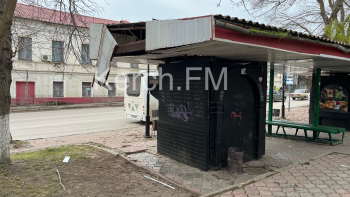 В Керчи на остановке «площадь Ленина» часть остановочного павильона может упасть на ожидающих автобус.