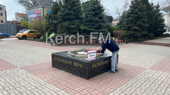 В Керчи 10 апреля территорию в сквере «Мира» приводят в порядок. Рабочие производят покраску урн и чистят вечный огонь. Также протирают надписи от грязи и пыли, - передает Керчь.ФМ.