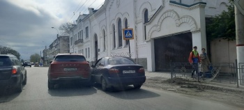 В Керчи на улице Свердлова 20 апреля произошло ДТП. Перед пешеходным переходом столкнулись легковушка и кроссовер, - передает  Керчь.ФМ.