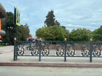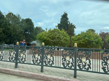 В Керчи на улице Театральной мыли вазоны, - передает  Керчь.ФМ. Работы вели днем 24 апреля.