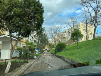 В Керчи внутридворовая дорога по Олега Кошевого, 20 после каждого дождя превращается в болото. Из-за особенности расположения, лужи не просыхают здесь неделями/месяцами, - передает  Керчь.ФМ.