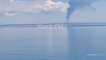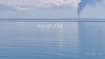 На 15:45 часов из Керчи видно, что огонь снова разгорелся. Опять появился столб дыма.