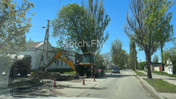 В Керчи 4 мая на улице Комарова устраняют порыв водовода. Для этого сотрудники водоканала разрыли новый асфальт, - передает  Керчь.ФМ.