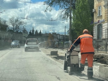 В Керчи с утра 10 мая на улице Свердлова идут работы на проезжей части, в месте где меняли водовод. Из-за этого часть полосы оградили еще сильнее.  Водители уже собираются в пробки, - передает  Керчь.ФМ.