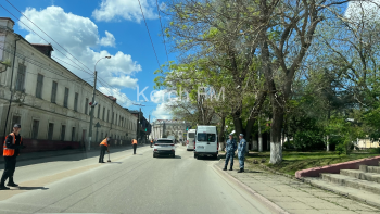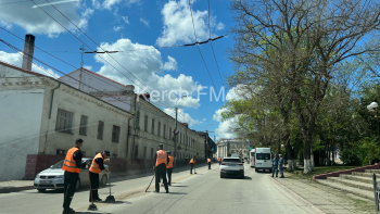 В Керчи осужденные убирали дорогу на Адмиралтейском проезде