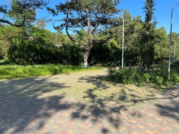 Пустыри на территории парка сильно заросли травой, куча травы и между плиткой на центральных аллеях.