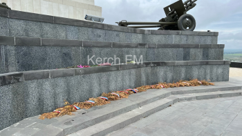 На горе Митридат в Керчи туристов встречают рванные флаги и засохшие венки. Их не могут убрать с 9 мая. Видно, что коммунальщики здесь бывают не часто. Траву, которая прорастает через плитку никто не убирает, - передает Керчь.ФМ.
