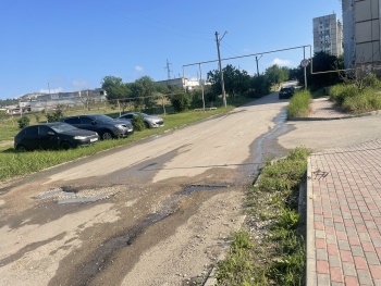 После многочисленных жалоб траншею «залепили». Возможно, эта смесь из г-на и палок продержалась бы подольше, если бы не косяки водоканала. На пересечении выезда со двора по Индустриальному, 9а и дороги-дублера течет чистая вода. Под дорогой ржавая в чопиках труба «устала и плачет» из всех щелей асфальта. И так не один день, и даже не одну неделю, и даже не один месяц. Вода подмыла заплеванную траншею, вода подмыла грунт под дорогой и продолжает подмывать. Неизвестно сколько еще машин сможет выдержать эта дорога, но то, что там скоро что-то уйдет под землю, сомненья нет.