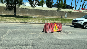 В Керчи на Вокзальном шоссе на проезжей части провалилась дорога. В яму установили пластиковый барьер, - передает Керчь.ФМ.
