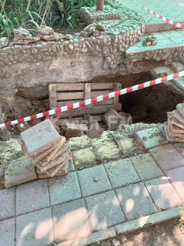 «Хочу обратить ваше внимание на состояние тротуара по ул. Курортной рядом с магазинчиками Деликатес, Атлантис. После одного из дождей в нем образовалась яма, которая увеличивается с каждым днём. По этому тротуару ежедневно ходят студенты КГМТУ,  и водят детей в сад. Сегодня утром на месте этой ямы уже четко видно край следующего обвала и он очень большой. Пока не случилось беды и во избежание человеческих увечий прошу вашей помощи осветить эту проблему и может тогда на нее отреагируют», - подписал керчанин.