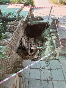 В Керчи провалился тротуар по дороге в детский сад