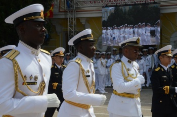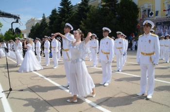 Ритуал производства в офицеры и мичманы завершился прощанием выпускников с Боевым знаменем ЧВВМУ и торжественным прохождением курсантских рот и офицеров училища.