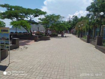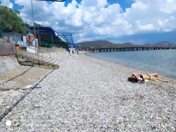 Реальные фотографии пляжа и набережной Коктебеля сделаны сегодня несколько минут назад.