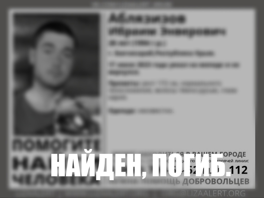 В Бахчисарае 28-летний Ибраим Аблязизов уехал на мопеде и не вернулся домой. Спустя неделю его нашли мертвым. Об этом сообщили в «ЛизаАлерт» Крым, - передает Керчь.ФМ.