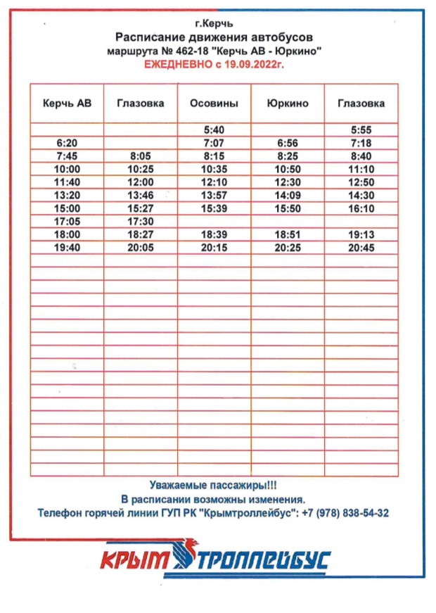 Для керчан, кто своим ходом добирается до пляжа в Юркино, расписание автобуса. Отметим, что расписание актуальное от перевозчика «Крымтроллейбус», - передает Керчь.ФМ.