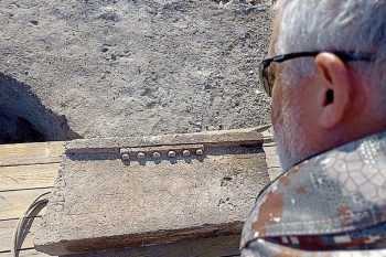 Очередная сенсация на раскопках античного городища Артезиан в Ленинском районе Крыма. Под двухтысячелетним слоем земли участники Артезианской археологической экспедиции обнаружили фрагмент ордерной детали древнего храма с надписью, посвященной боспорскому царю Фарнаку II. Он был сыном знаменитого Митридата VI Евпатора. Именно Фарнака Митридат ценил больше всех из своих детей, называя своим преемником, и который позже составил заговор против отца, - передает Керчь.ФМ.