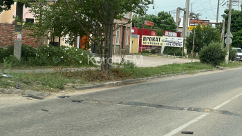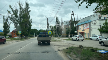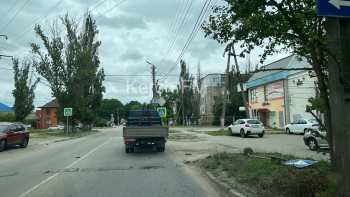 Керчане не понимают почему городские власти не могут её засыпать хотя бы. А рядом с ней лежит и сбитый дорожный знак, предупреждавший ранее о «лежачем полицейском».