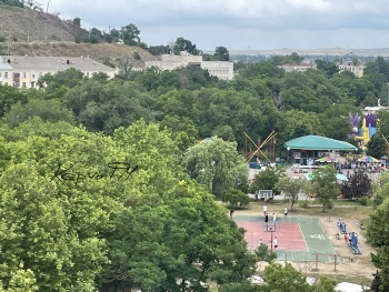 Молодежь, кто не в кафе, маневрируют по затопленной и заиленной набережной в белых кроссовках или на каблуках, или оккупировали спортивную площадку и ближайшие столики.