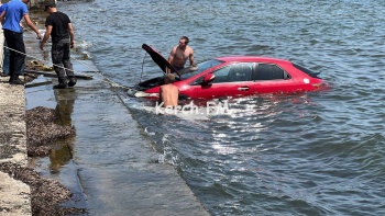 В этом месте ежегодно 19 января устраивают крещенские омовения. Машину 13:50 часов не достали. Люди не пострадали. Можно конечно предположить, что это автомойка "Мой сам" так заработала, но после такого душа в соленой воде машину можно уже и не доставать, даже на запчасти сомнительно.