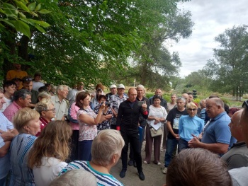 Брусаков и компания посетили сход жителей Героевки. Одни жаловались на сливы говна в море, другие жаловались, что им купаться не дают. Редакцию Керчь.ФМ на такое мероприятие не позвали, мы сами пришли. Ничего нового. Водоканал длину трубы не удлинил, по прежнему может качать только на расстоянии 20 метров. А вот вопрос про ограничение доступа к морю заинтересовал главного городского администратора, поэтому процессия удалилась на побережье.