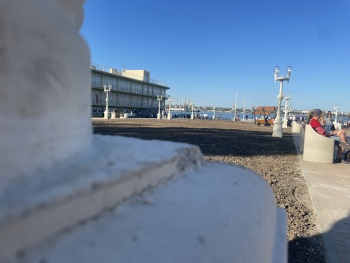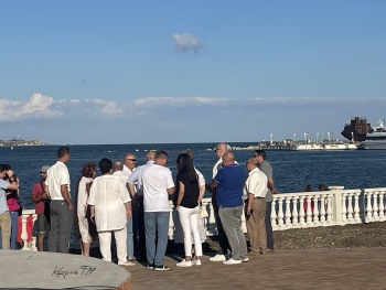 Теперь только белые балюстрады закрывают пролив. Самые красивые виды залива - на закате, когда солнце над Митридатом светит на колоннаду и за ней на грифонов и воду. Как и было обещано, к 18 часам там играла живая музыка, немногим позже пришли официальные лица, но они не мешали слушать музыку и гулять по новым тротуарам, - передает Керчь.ФМ.