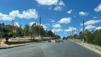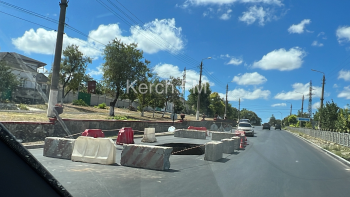 В Керчи на улице Чкалова бетонными блоками оградили провал дороги. Перед препятствием установили предупреждающие дорожные знаки, - передает Керчь.ФМ.