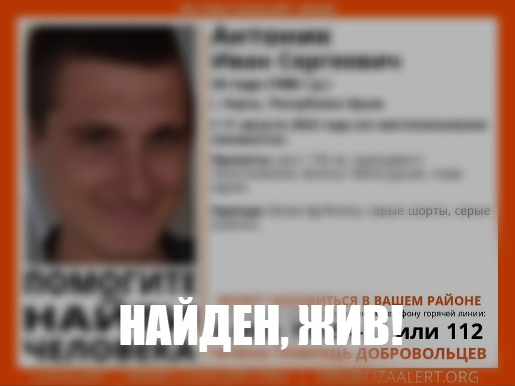В Керчи 34-летний житель без вести пропал две недели назад. Его нашли живым и невредимым. Об этом сообщили в поисковом отряде «ЛизаАлерт» Крым, - передает  Керчь.ФМ.