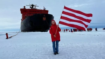 Школьница из Керчи развернула на Северном полюсе флаг родного города