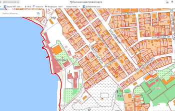 Редакция из данных публичной кадастровой карты попыталась выяснить кто же является арендатором или собственником земельного участка, который находится справа от купола. На карте нет оформленного в соответствие с российским правом земельного участка в том месте. В то же время на побережье есть набережная, которая оформлена как берего-укрепительное сооружение и является собственностью публично-правовых образований.