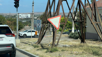 Керчане обращают внимание на дорожный знак на Куль-Обинском шоссе, который размещен не так как положено. Фотографией этого сооружения местный житель поделился с редакцией Керчь.ФМ