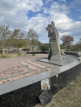 Вокруг относительно нового, выстраданного пенсионерами и бюджетниками на непонятных митингах памятника, потрескалась и отпала плитка. Но это не мешает устраивать цветовозложения. И это уже не объект культурного наследия, чтобы говорить про требование разрешений от Минкульта, - это местная достопримечательность, - передает Керчь.ФМ.