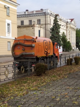 В городе ожидают приезда Аксенова. Именно поэтому три дня подряд в городе наводили чистоту, а сегодня с утра  после обильного дождя машина мыла обочины, - передает Керчь.ФМ.